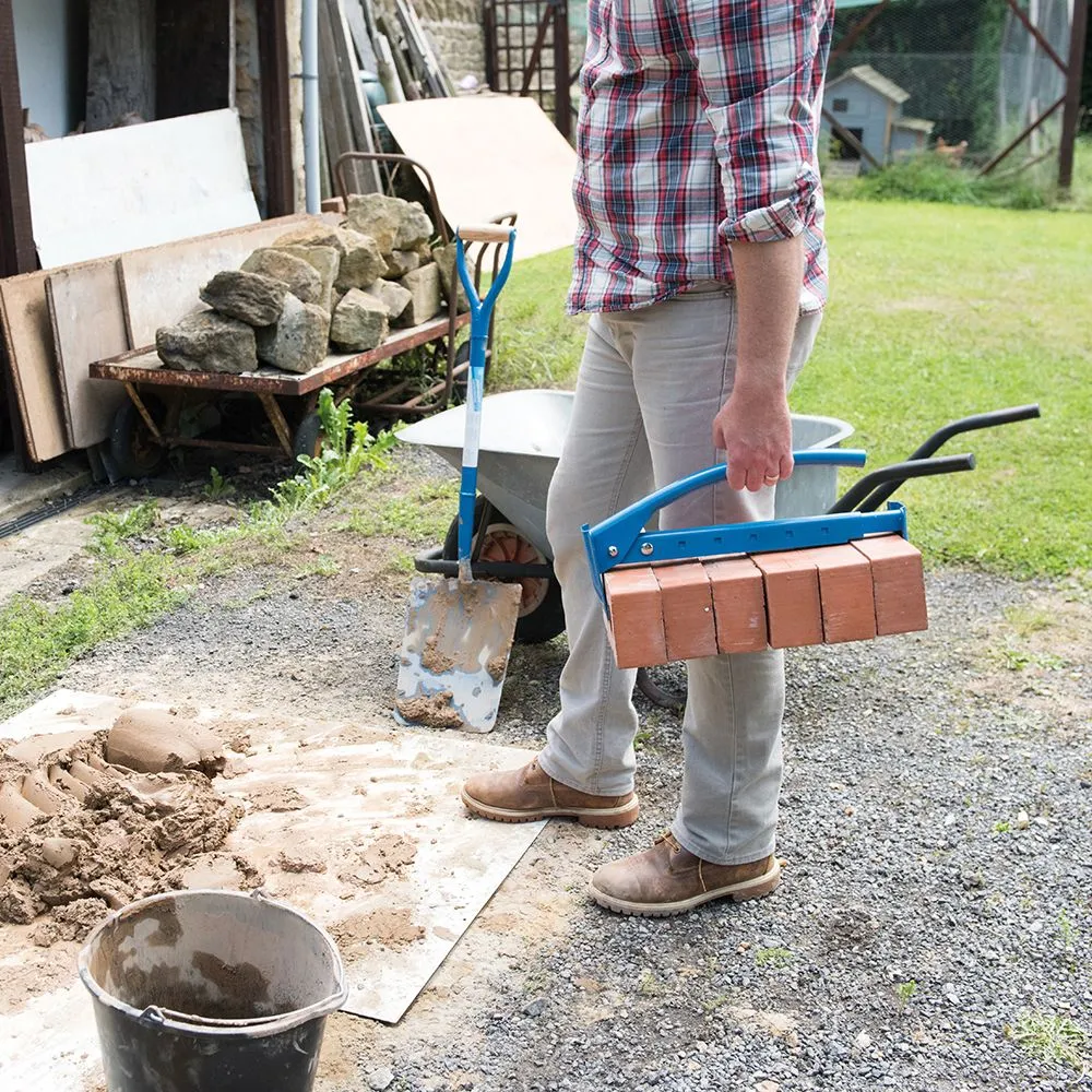 Wysokiej jakości metalowa konstrukcja, lakierowana i bezobsługowa. W pełni regulowany. Gdy zacisk jest podniesiony, zaczepy zamyka się automatycznie i zaciska cegły. Możliwość podniesienia od 6 do 10 cegieł na raz.
