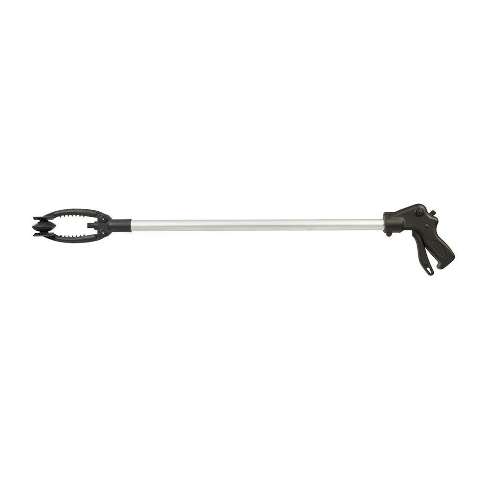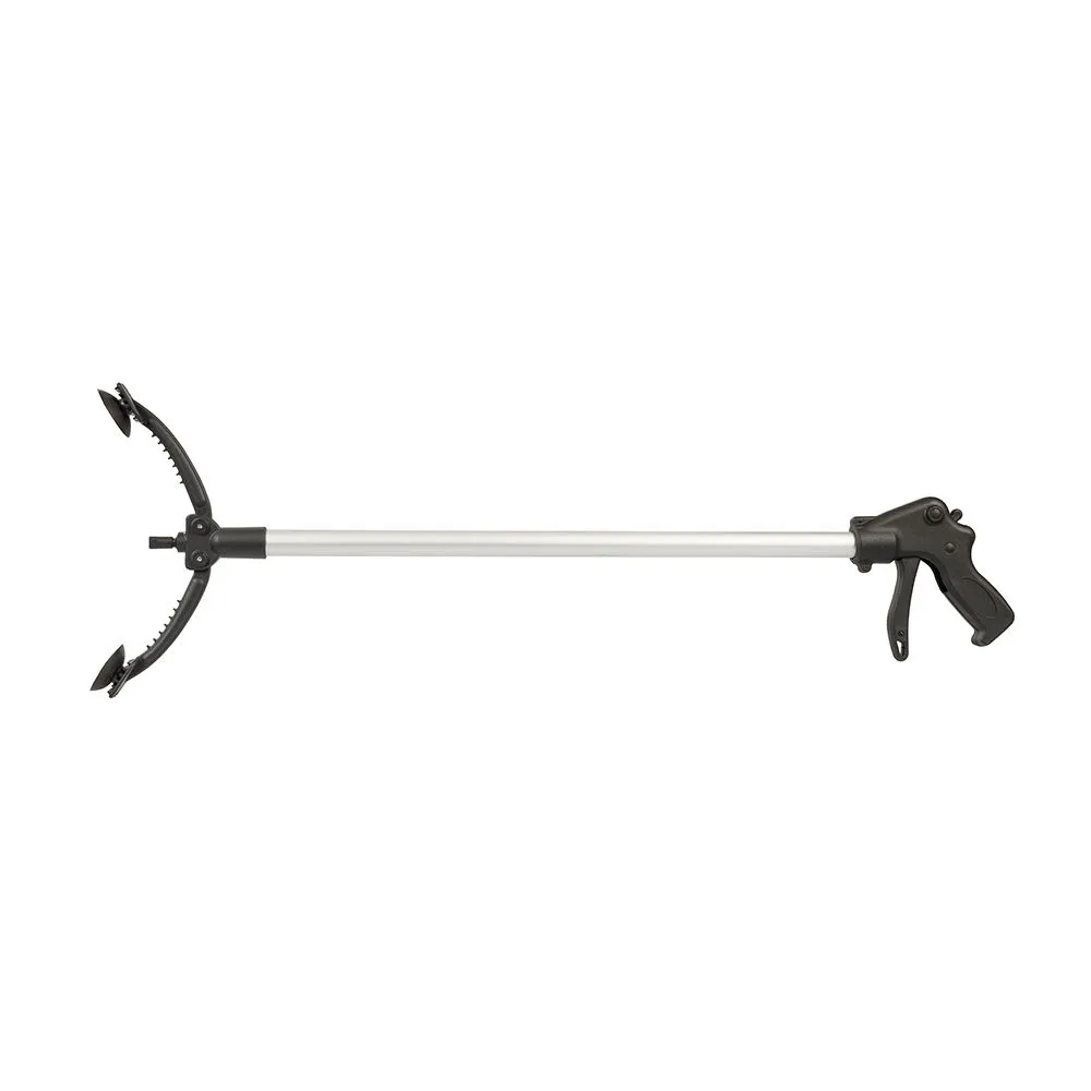Lekka aluminiowa konstrukcja plastikowych kleszczy, konturowana strefa uchywtu. Jednym ruchem otwiera się i zamyka. Zdejmowane przyssawki, ząbkowana powierzchnia kleszczy, zapewnia dobrą przyczepność. Regulowana zdolność mocowania kleszczy do 200 mm. Narzędzie przeznaczone do zbierania obiektów z podłoża, bez konieczności pochylania się.
