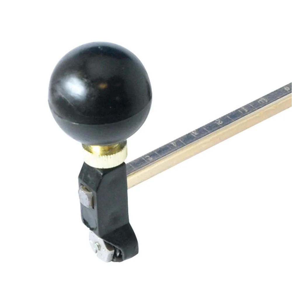 Obrotowy uchwyt posiada 6 kółek z węglika wolframu zapewniają długą żywotnośc narzędzia. 55 mm gumowa przyssawka zapobiegająca przesuwaniu się cyrkla. Obrotowy uchwyt zapewnia płynny ruch cyrkla. Jasna podziałka metryczna na pokrytym mosiądzem stalowym ramieniu. Do wycinania precyzyjnych okręgów lub wycinków w szkle o średnicy od 65 do 300 mm / grubości 2- 8 mm.