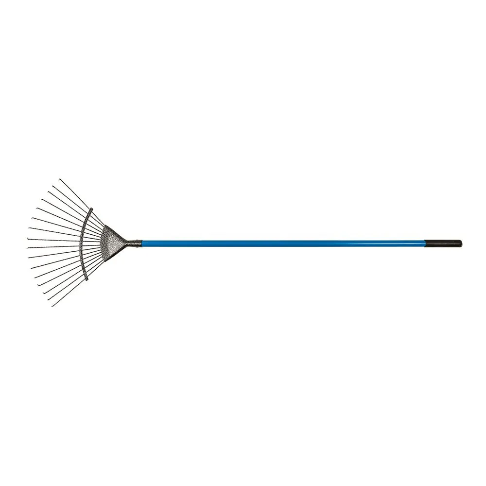 Grabie do liści z 16 zębami częścią roboczą pokrytą żywicą epoksydową oraz lakierem młotkowym odpornym na rdzewienie i ułatwiającym konserwację. Trzonek o dł. 1200 mm oraz wygodny uchwyt zapewniający długie użytkowanie z otworem do zawieszenia. Głowica dł. x szer.: 370 x 420 mm.