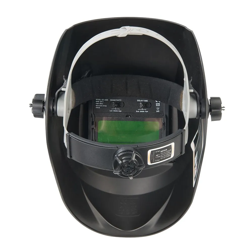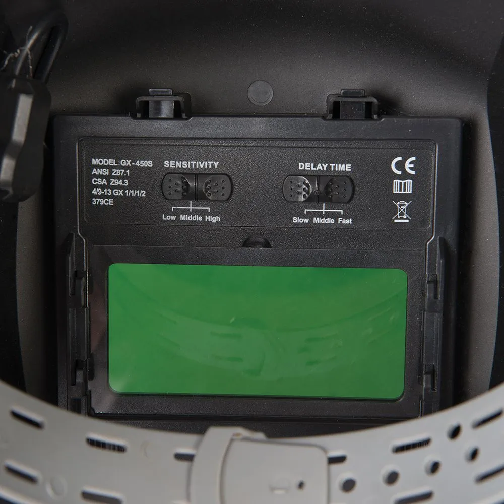 Przeznaczony do elektrycznego spawania MIG, TIG oraz łukowego (MMA/GMAW). Regulowany czas opóźnienia i wrażliwość na działanie w różnym środowisku. Wygodna opaska na głowę z 4 stopniową regulacją zapewnia wygodny montaż. Podwójne czujniki światła zmieniają się z jasnego na ciemne w 1/15,000 sekundy. Zaciemnienie DIN 4 (jasne)/ DIN 9-13 (ciemne). Zatwierdzony certyfikatem EN379 oraz 175.