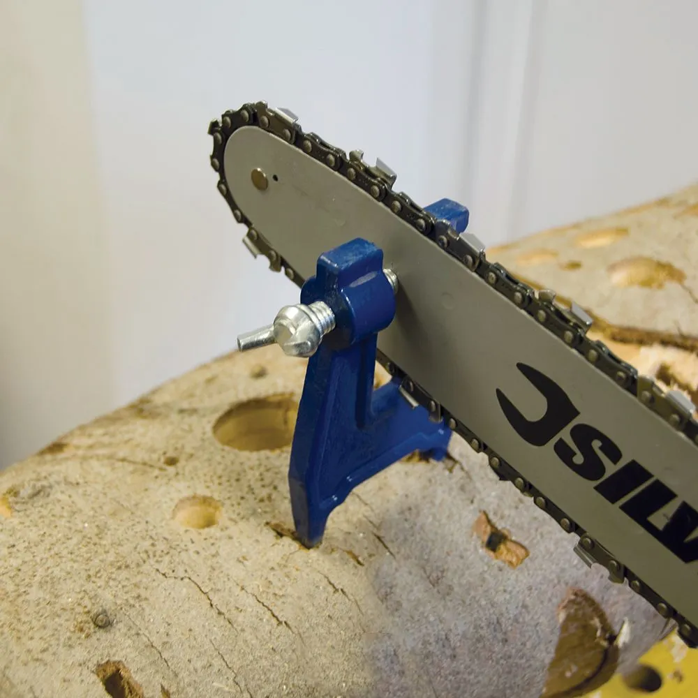 Stal węglowa konstrukcji imadło. Dwa kolce do zakotwiczenia w drewnie. Zacisk motylkowy na prowadnicę łańcucha. Do zastosowania z piłą łańcuchową. Zakres wysokośći 0 - 16 mm.