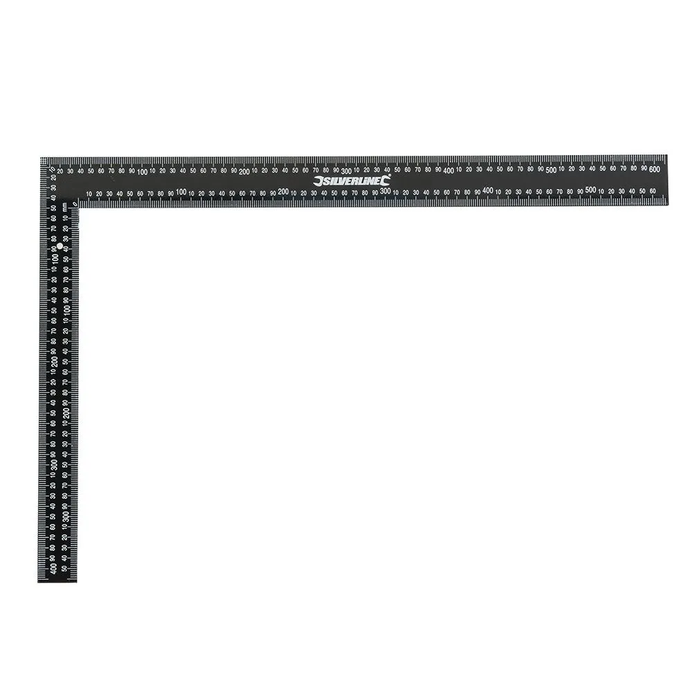 Kątownik z grubej stali, z podziałką metryczną i calową. Do krokwi, drzwi i ram okiennych, schodów i wielu innych zastosowań.