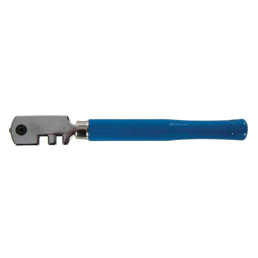 Obrotowa głowica z 6 kółkami tnącymi z węglika wolframu zapewniają długą żywotność narzędzia. Głowica tnąca z tarczą z dwoma nacięciami pozwalającymi na uchwycenie szkła przy łamaniu. Konturowana rękojeść zapewnia komfort pracy. Tnie szkło do 4 mm grubości. W celu wymiany kółka tnącego należy obrócić głowicę.