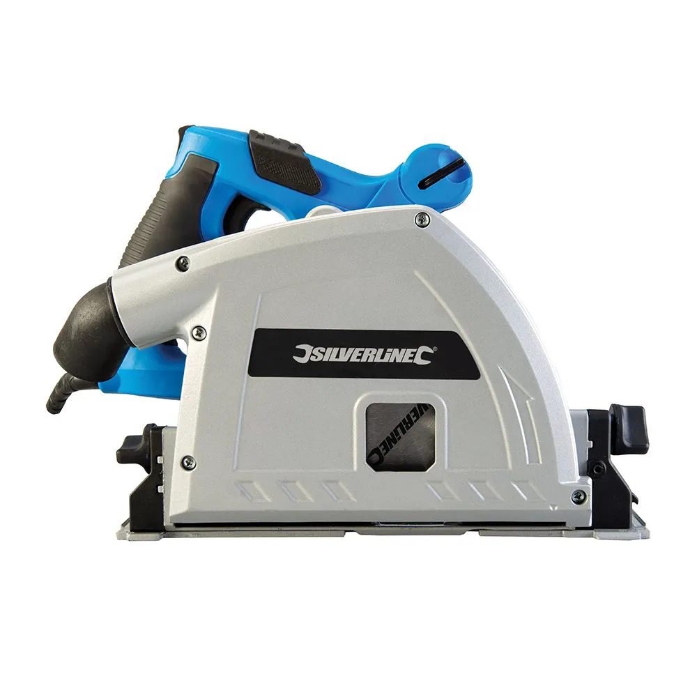 Piła zagłebiarka wyposażona w podstawę ze stopu aluminium, osłony tarczy oraz port odsysania pyłu. Rozmiar tarczy 165 mm x 20 mm z zębami z węglika wolframu do cięcia naturalnego i drewna kompozytowego. Wytłaczane tory o wymiarach 2 x 700 mm łatwo współgrają ze sobą, tworząc tor długości 1400 mm z antypoślizgową podstawą. Łatwo dostępna blokada wału ułatwia szybką i wygodną zmianę ostrza. Blokada zanurzenia zwiększa bezpieczeństwo. Uchwyty typu Softgrip. W komplecie system prowadzenia zapewnia gładkie, precyzyjne wykonywanie cięć prostych i kątowych. Zakres skosu: 0-45°. Maksymalna głębokość cięcia: 56 mm. Prędkość bez obciążenia: 5200 min-1.