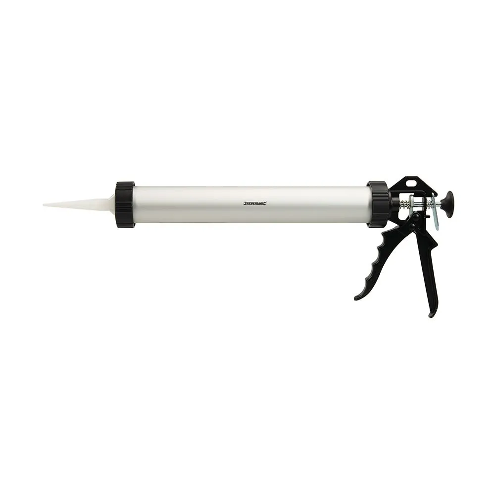 Metalowy pistolet do aplikacji silikonów w folii, nadaje się również do standardowych wkładów uszczelniających.