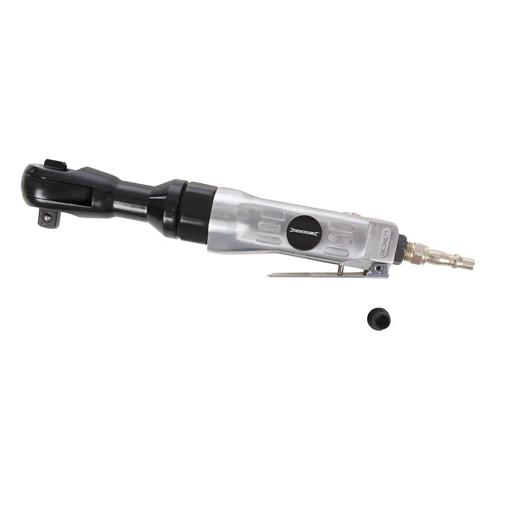 Klucz zapadkowy z kwadratowym napędem 1/2 " oraz mechnizmem odwrócenia przez skręcenie. Regulacja mocy kontrolowana spustem. Maksymalny moment obrotowy 61 Nm. Długośc całkowita 265 mm. W zestawie z adapterem 3/8" oraz szybkozłączem brytyjskim i europejskim 1/4". Prędkość bez obciążenia 150 min-1. Zużycie powietrza 140 L/min (5 cfm).