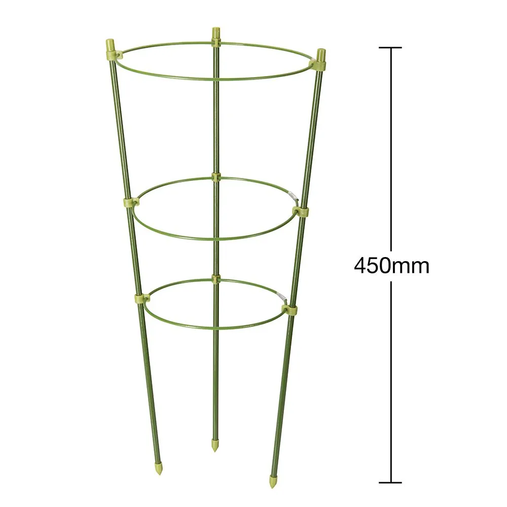 Aluminiowa konstrukcja powleczona zielonym plastikiem. Przyrząd gwarantuje wsparcie dla młodych roślin i warzyw. Składany na płasko dla wygodnego przechowywania. Podpora składa się z 3 palików i 3 obręczy. Pierścienie o średnicy: 140 mm, 155 mm oraz 175 mm. Wysokość 450 mm.