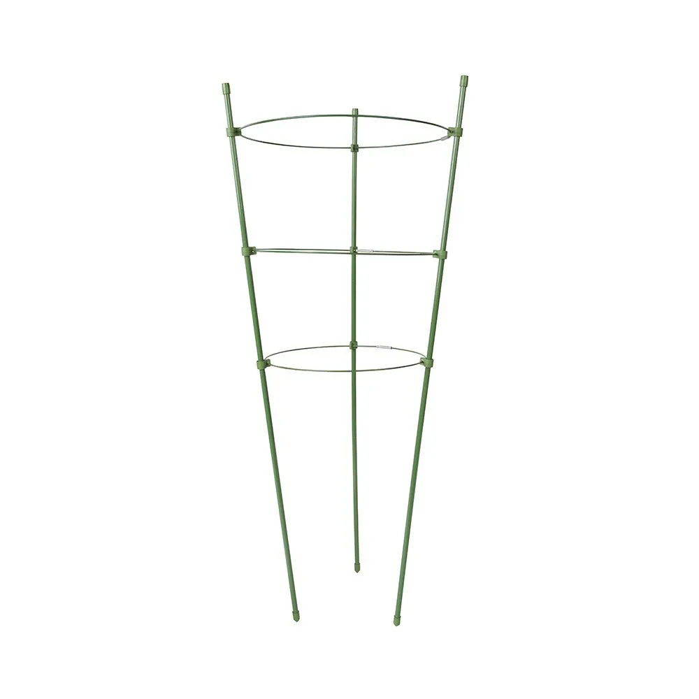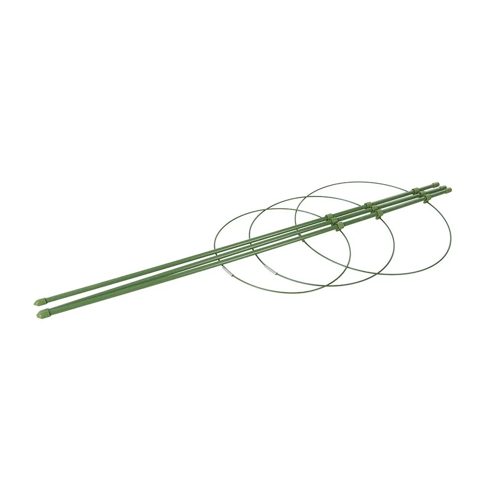 Mocne i solidne pierścienie do wspierania roślin, z plastikową powłoką odporną na rdzewienie, zapewniające podporę i stabilizację podczas wzrostu. Zapewniają subtelny, ale bardzo efektowny wygląd podczas wspierania roślin. Składa się na płasko w celu łatwego przechowywania. W komplecie: 3 x podpory plus 3 x pierścienie. Rozmiary pierścieni: 180, 200 i 220 mm. Zmontowana wysokość: 600 mm.