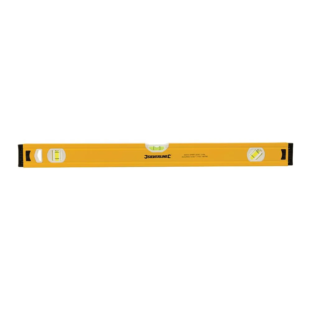 Malowana proszkowo, wytłaczana konstrukcja aluminiowa 1,1 mm. rezowana dolna i górna podstawa dla zwiększenia dokładności ustawienia. Żebrowane boki, ochronne nakładki oraz otwór do zawieszenia. Libelle : 45 °, 90 ° i 180 ° wysoce widoczne, odporne na promieniowanie UV. Dokładność 1 mm/m.