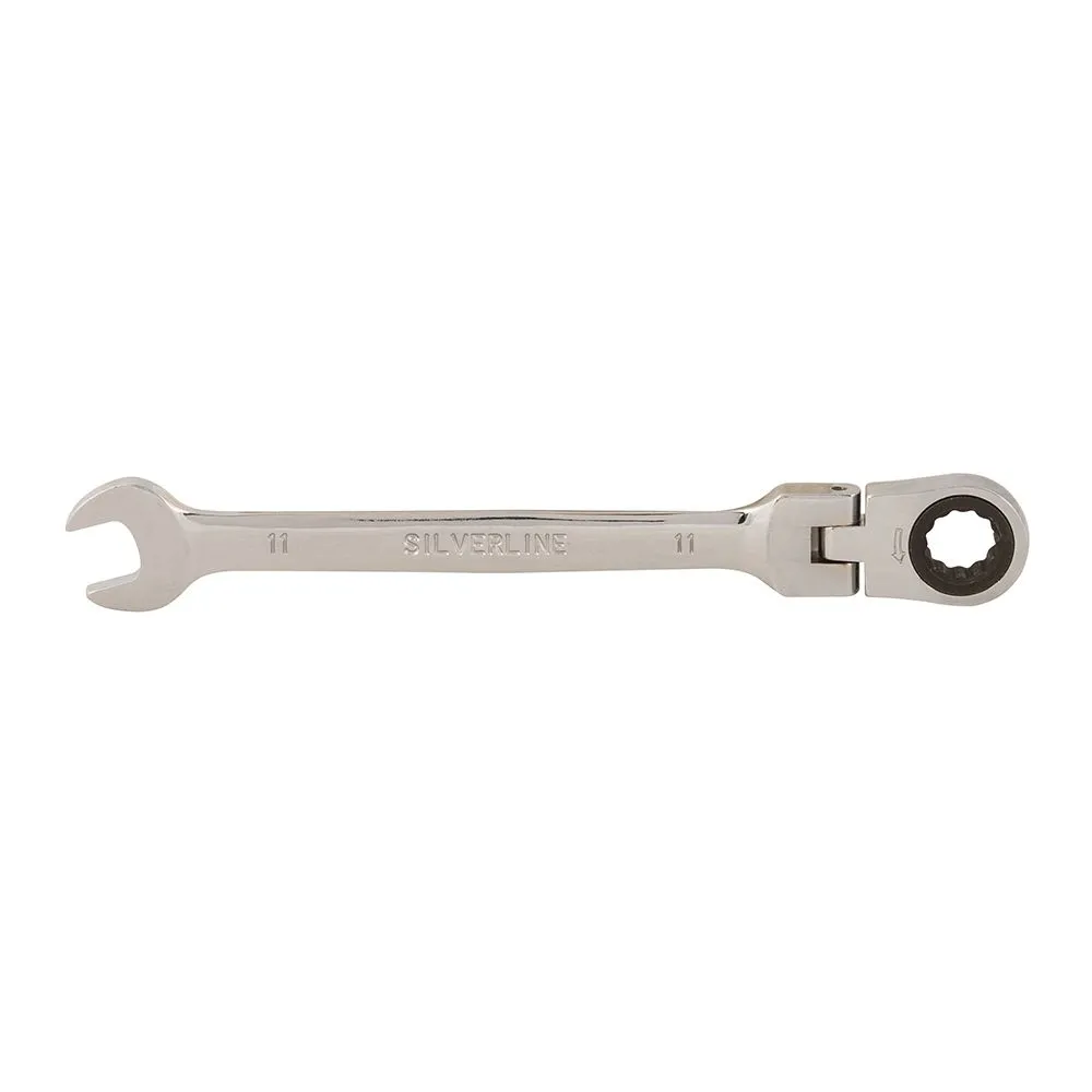 Hartowana stal chromowo-wanadowa klucza metrycznego z polerowanym wykończeniem. Chromowana stal zapobiega korozji. Grzechotka 5°. 180° obrotowa głowica. Zapewnia łatwy dostęp w ciasnych przestrzeniach.