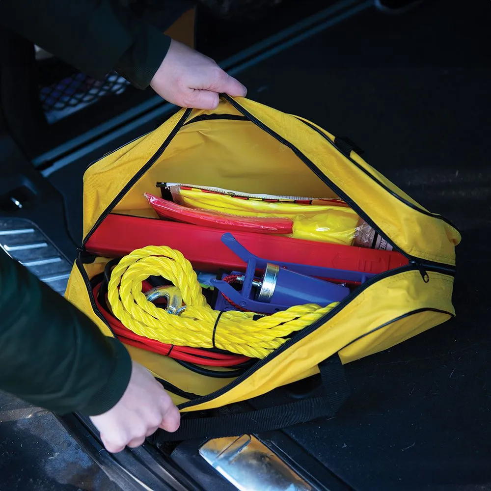 Wszechstronny zestaw do zastosowania w większości awaryjnych przypadków drogowych. Zestaw zawiera kable rozruchowe 3 m, 3 m linę holowniczą, trójkąt ostrzegawczy (zgodny z ECE27), kamizelkę ostrzegawczą (zgodną z ECE27), latarkę na korbkę z 3 super mocnymi diodami LED, pompkę nożną, gwizdek, znak ostrzegawczy, skrobaczkę do lodu, zapakowany w solidną materiałowe etui. Przewody rozruchowe 220 A są zgodne z brytyjskimi standardami BS AU237a:1993, DIN 72553-35 i GS/TUV.