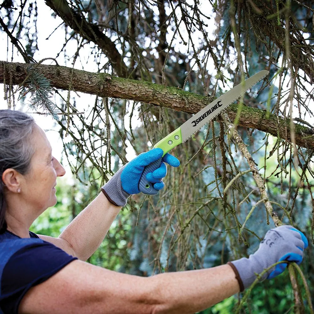 Składana piła z uzębieniem agresywnym; hartowane, potrójnie szlifowane zęby do szybkiego cięcia. Ergonomiczny pokryty gumą termoplastyczną uchwyt typu Softgrip z mechanizmem unieruchamiający ostrze. Idealna do prac ogrodowych, piłowania, przycinania drzew i krzewów. Posiada otwór do zawieszenia.