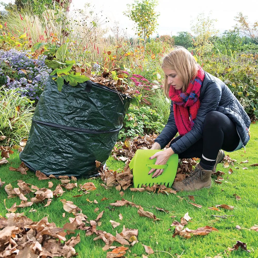 Podwójnie laminowany, odporny na promienie UV, tkany polietylen o gramaturze 100 g/m2. Odporny na rozrywanie, sprężynowa konstrukcja. Taśmowe uchwyty (2 do podnoszenia oraz 1 x do opróżniania). Pętelki do składania, spinania i przechowywania. Do zbierania odpadów ogrodowych, w tym liści i traw.