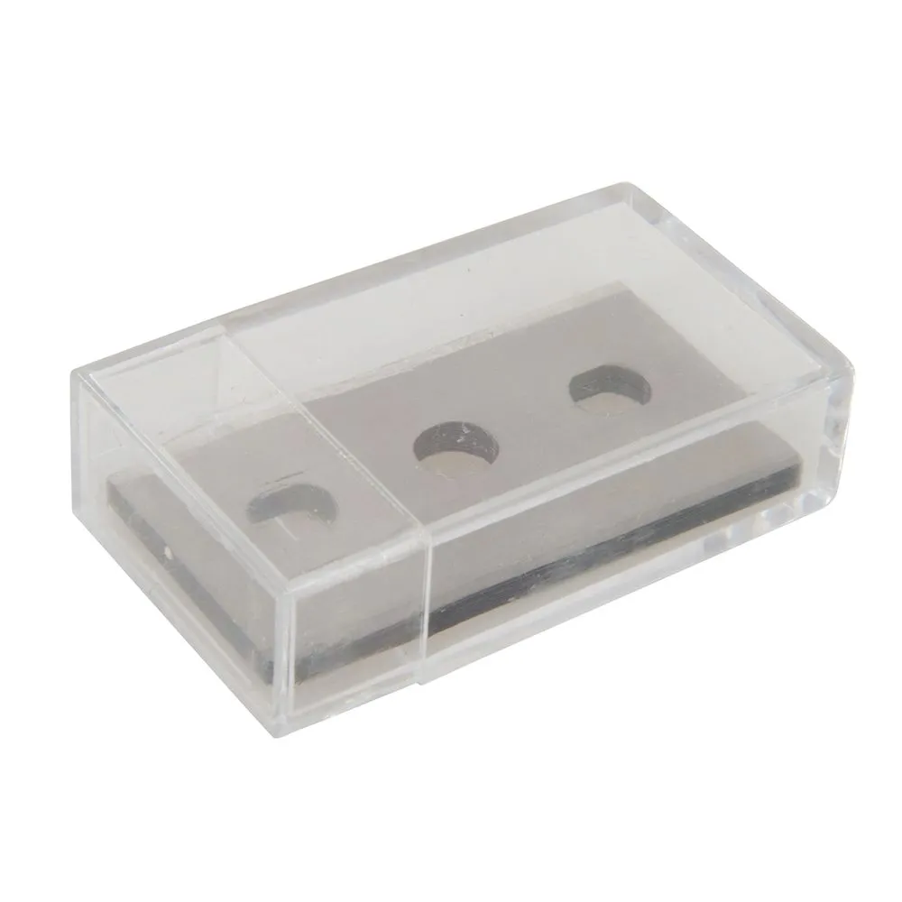 Skrobak z chromowanej stali z 43 mm dwustronnym ostrzem zgarnijącym. Do usuwania pozostałości i farby z okien, bądź innych gładkich powierzchni. Uchwyt skrobaka umieszczony ponad ostrzem dla bezpieczeństwa podczas jego nieużywania. Zawiera 10 X wysokowęglowych ostrzy typu SK5. Kompatybilny z dwustronnym ostrzem do skrobaka Silverline ( 427668).