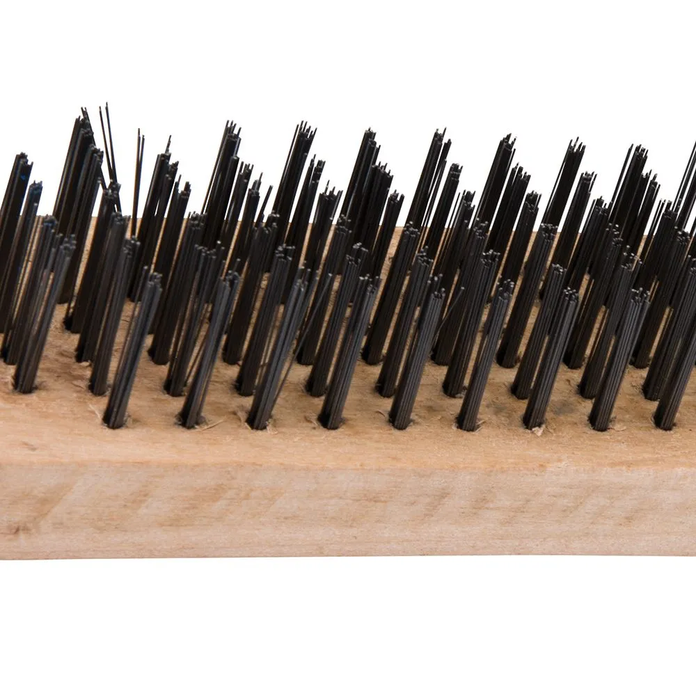 Szczotka druciana wykonana z mocnej stali z drewnianą rękojeścią. Długość całkowita szczotki 290 mm, długość włosia 25 mm.