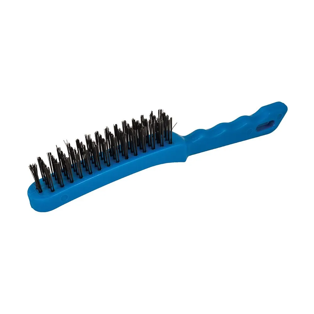 Solidna stalowa szczotka druciana z wytzrymałym, plastikowym uchwytem. Długość włosia 25 mm, długość cąłkowita szczotki 280 mm.