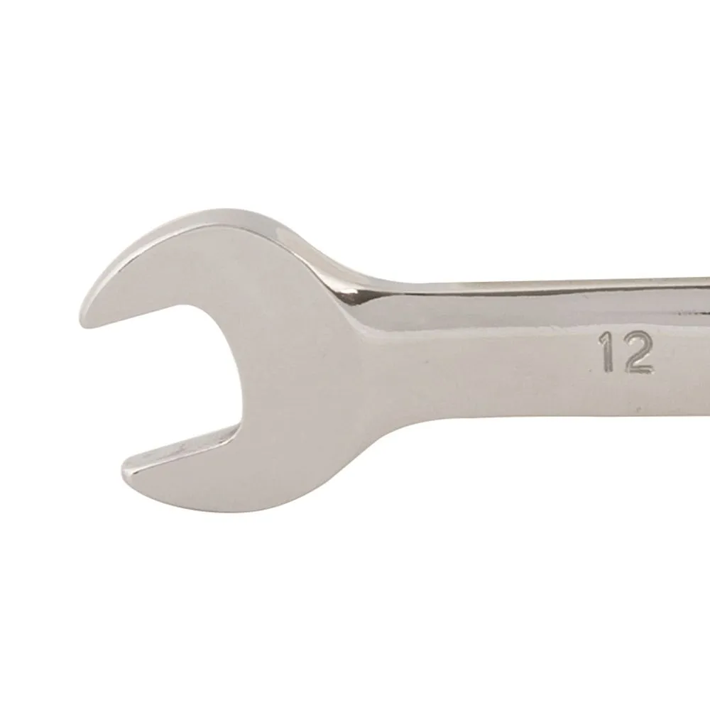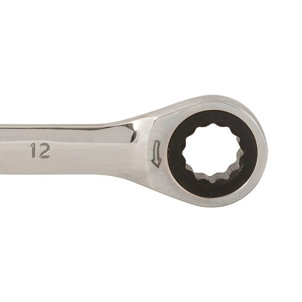 Hartowana stal chromowo-wanadowa klucza metrycznego z polerowanym wykończeniem. Chromowana stal zapobiega korozji. Grzechotka 5°. Zapewnia łatwy dostęp w ciasnych przestrzeniach.