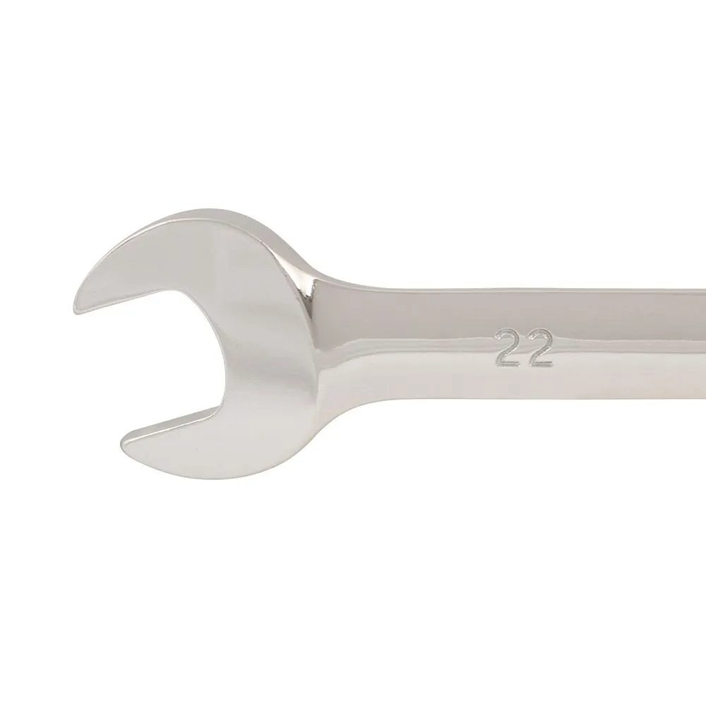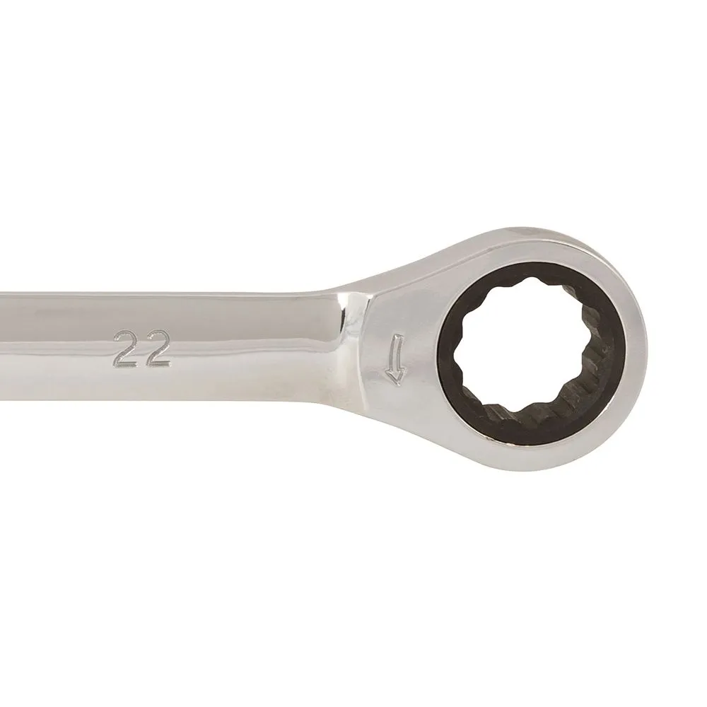Hartowana stal chromowo-wanadowa klucza metrycznego z polerowanym wykończeniem. Chromowana stal zapobiega korozji. Grzechotka 5°. Zapewnia łatwy dostęp w ciasnych przestrzeniach.