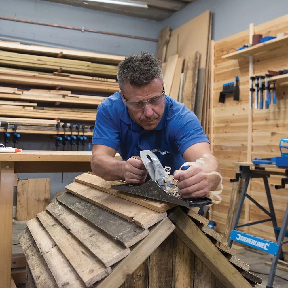 Żeliwny, stabilny korpus, eleganckie uchwyty z drzewa różanego zapewniaja komfort pracy, zabezpieczone dwoma mosiężnymi pokrętłami. Wytrzymałe 2,4 mm ostrze ze stali wysokowęglowej. Frezowane boki i karbowana podstawa z mosiężnym pokrętłem regulacyjnym. Prosty, szybki mechanizm regulacji z łatwym wyjmowaniem ostrza. Narzędzie idealnie się sprawdza do spłaszczania i wygładzania długich krawędzi gotowych do łączenia.