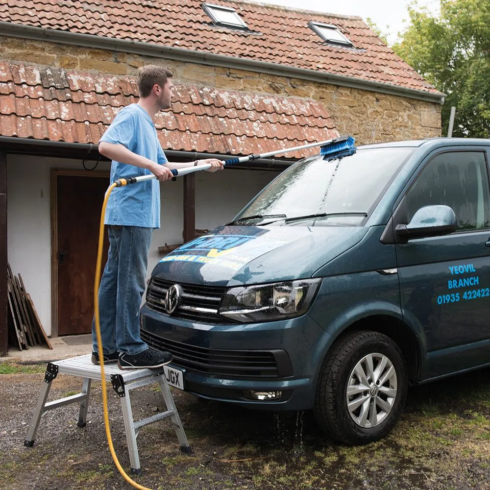 Teleskopowa szczotka do wszystkich rodzajów zadań z zakresu czyszczenia, w tym czyszczenia pojazdów, okien, cieplarni itd. Miękkie pierzaste końcówki włosia na dwustronnej głowie szczotki. Standardowe mocowanie węża. Wygodny przełącznik on/off. 2 gumowe uchwyty z pianki EVA. Aluminiowy uchwyt rozciąga się od 1,32 m do 2,14 m.