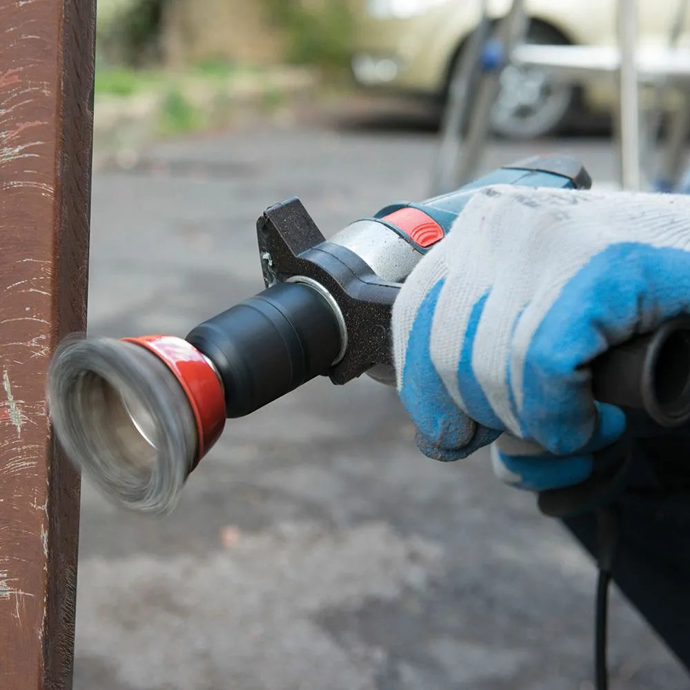 Wysoce wytrzymała średnica 0,5 mm drutu szczotek przeznaczonych do usuwania zadziorów, rdzy, farby, kamienia, wygładzania oraz przygotowywania spawów. Do metalu i kamienia, czyszczenia, przygotowywania powierzchni oraz zadań konstruktorskich. Do użytku z szlifierkami kątowymi. Gwint M14 X 2 wewnętrzny. Maksymalna prędkość 8500 obr./min.