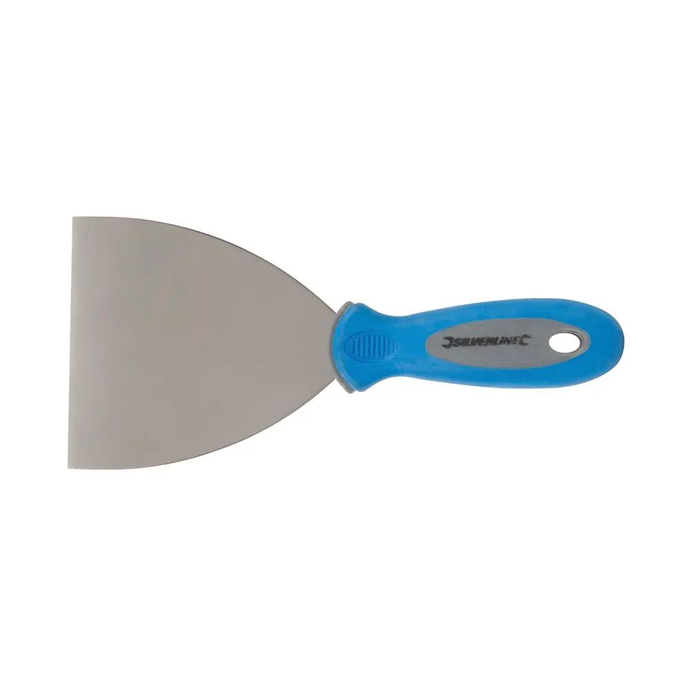 Odporna na rdzewienie szpachelka z hartowanej stali. 2-kolorowy uchwyt Softgrip. Otwór do zawieszenia.