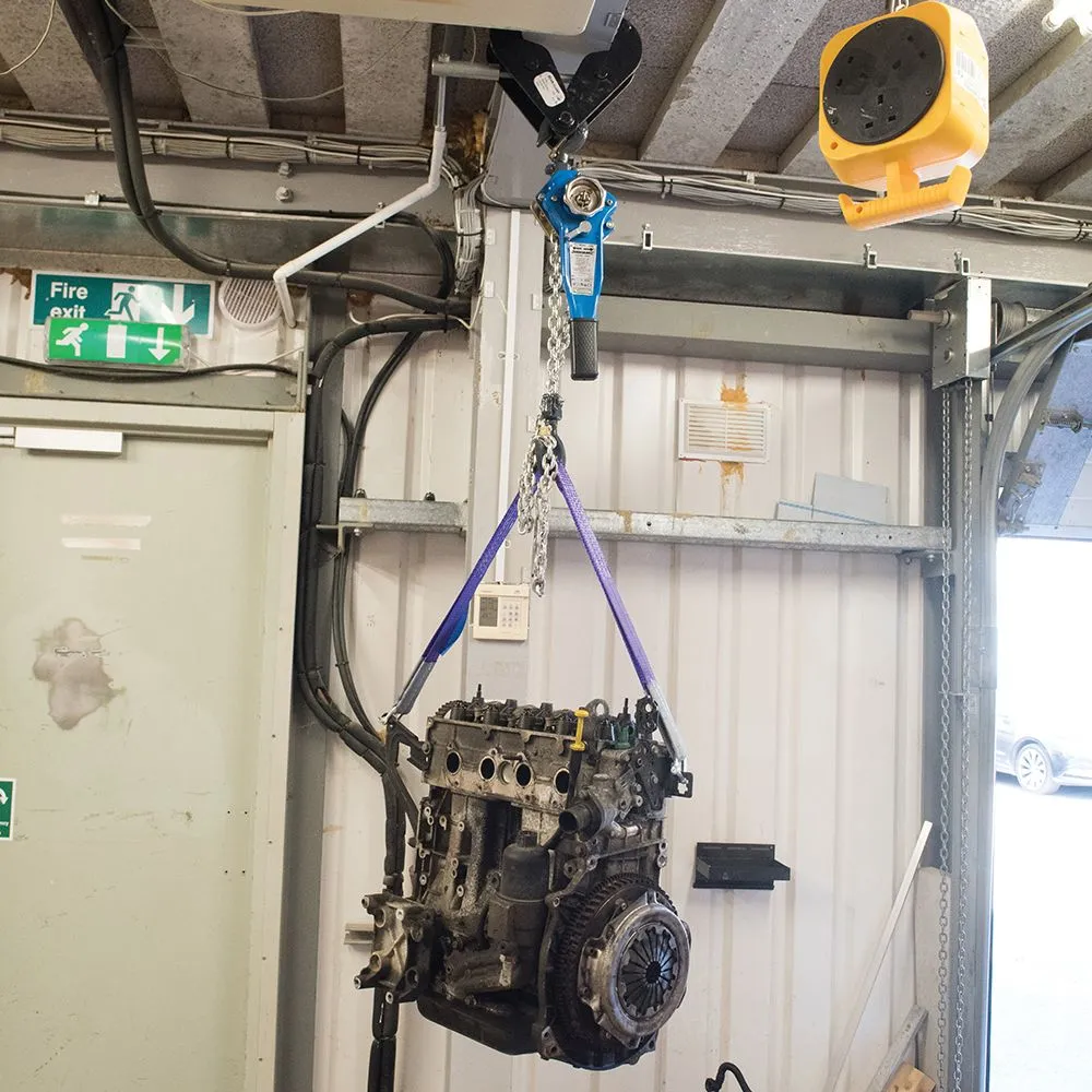 Wymagana minimalna siła ciągnięcia do pracy bez wysiłku. Kompaktowy i lekki, do stosowania w ograniczonych obszarach o niskim pomieszczeniu. Łatwo dostępny w dowolnej pozycji (odwrócony lub pochylony). Wysokiej jakości łańcuch ze stopu stali, mechaniczne hamulce i funkcja regulacji łańcucha. Wysokość podnoszenia do 1,5 m. Zgodny z normą EN13157.