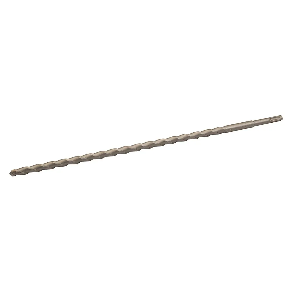 Wiertło udarowe SDS Plus z końcówkami z węglika wolframu. Dwa żłobienia na wiertle umożliwiają bardzo szybkie odprowadzenie urobku przy wierceniu w betonie, cegle czy kamieniu.
