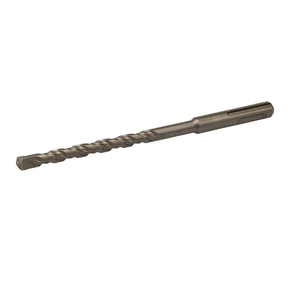 Wiertło udarowe SDS Plus z końcówkami z węglika wolframu. Dwa żłobienia na wiertle umożliwiają bardzo szybkie odprowadzenie urobku przy wierceniu w betonie, cegle czy kamieniu.