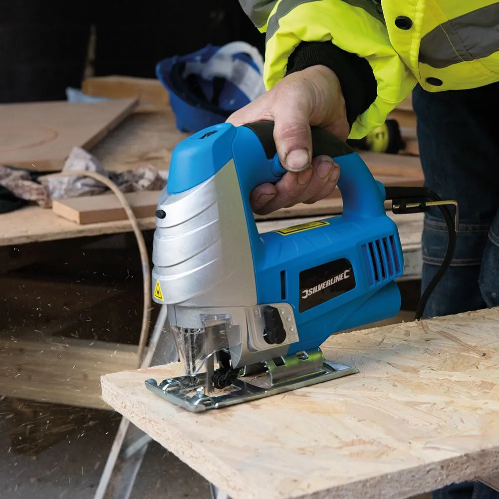 Komfortowa rękojeść Softgrip. Aluminiowa obudowa mechanizmu oraz regulowana prędkość do cięcia różnych materiałów. 3 pozycyjny zwrot pracy wyrzynarki, oraz regulowana skośna płyta do cięcia pod skosem do 45°. Przezroczysta osłona ostrza. Wbudowany laser do dokładnego cięcia. Szybka, beznarzędziowa wymiana osprzętu. Maksymalna średnica cięcia: w drewnie 80 mm, stali 10 mm, aluminium 10 mm. Prędkość obrotowa bez obciążenia 0-3000 min-1.