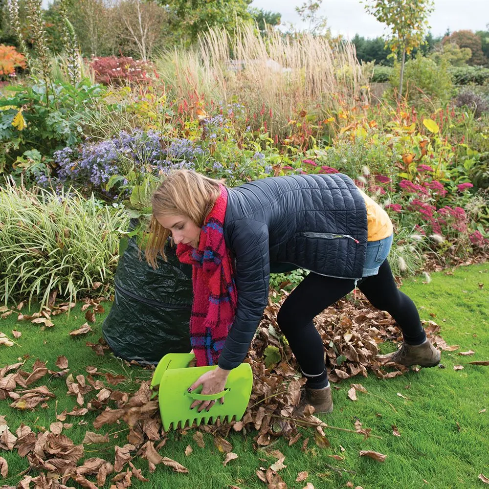 Lekkie zbieraki z polietylenu do szybkiego zbierania liści i odpadów ogrodowych. Trwała, czysta powierzchnia. Chroni ręce przed robakami i brudem. Zintegrowany uchwyt.