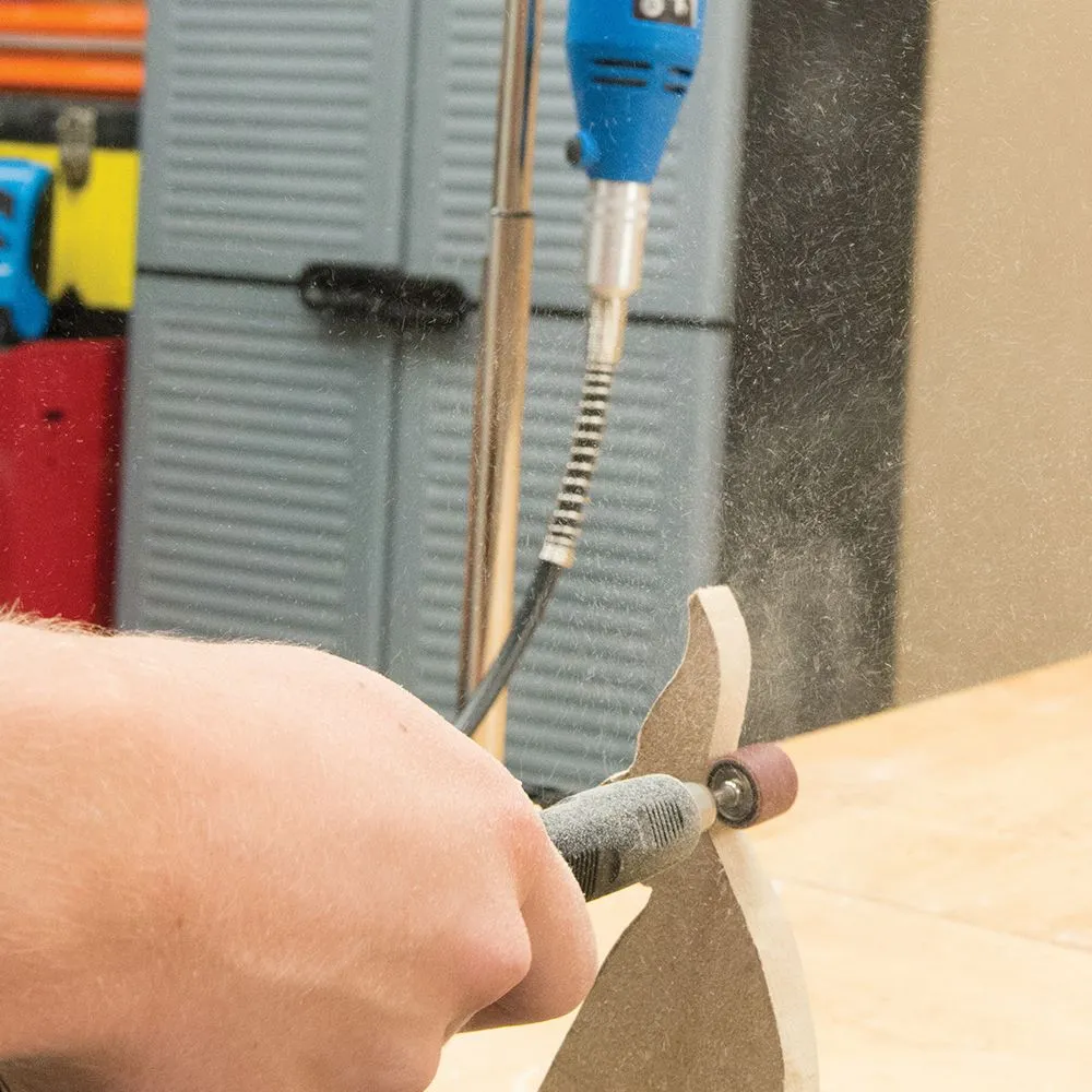 W komplecie: tarcza do cięcia, tarcza ścierna, osełka, bęben ścierny, polerki, krążek polerski oraz filcowe końcówki polerskie. Zestaw sprawdza się idealnie podczas precyzyjnych prac rzemieślniczych, artystycznych, kosmetyce samochodowej, pracy w drewnie oraz majsterkowaniu. Kompatybilny z większością wielofunkcyjnych narzędzi obrotowych Dremel, Silverline oraz GMC. Trzpień 3,17 mm. Maks. prędkość 28 000 obr./min.