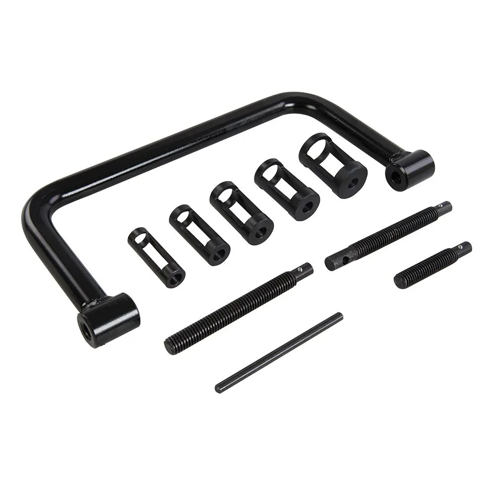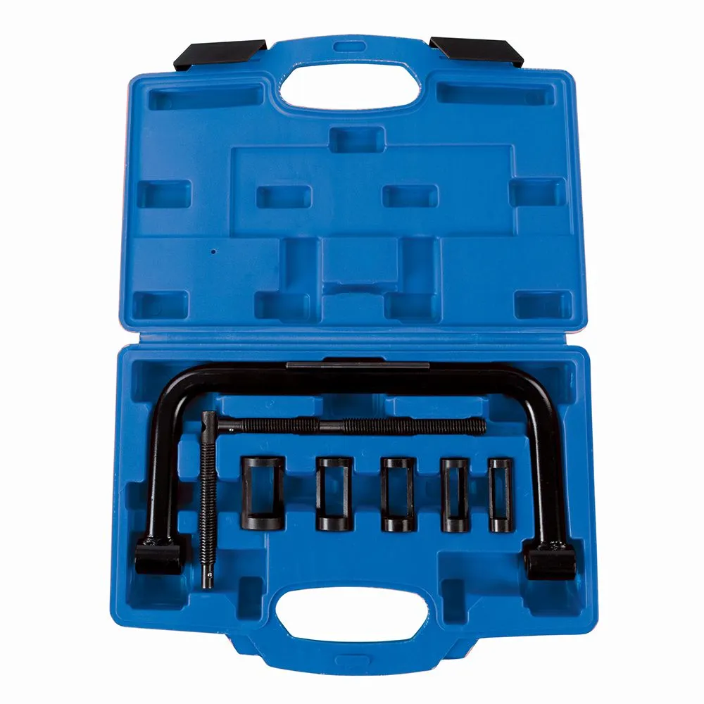 Mocna konstrukcja ze stali węglowej z czarnym wykończeniem fosforanowym. Zestaw przeznaczony do montażu oraz demontażu sprężyn zaworowych w niewielkich silnikach. Uchwyt do nawijania ciśnienia z 3 x śrubami przedłużającymi. W zestawie 5 walców: 16, 19, 23, 25 i 30 mm, uchwyt typu T oraz 3 przedłużki; ścisk typu C oraz wytrzymały futerał.