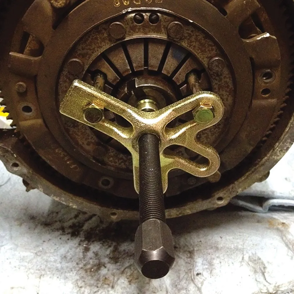 Do wyciągania kół pasowych, wyważarek oraz biegów z gwintowanymi otworami. Pływający przegub zapobiega uszkodzeniom wału. 4 gniazda w jarzmie pozwalają na 2 lub 3 - zastosowania otworów. Narzędzie do wyrównywania za pomocą śruby centralnej na końcu wału korbowego.