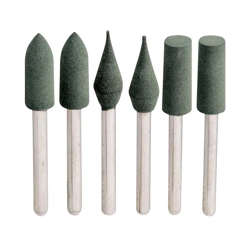 Gumowe końcówki polerskie przeznaczone do wykańczania powierzchni oraz aplikacji przed polerskich na metalach, ceramice, stopach, płytkach, kamieniu, szkle, tworzywach sztucznych oraz włóknie szklanym. Kompatybilne z większością wielofunkcyjnych narzędzi Dremel, Silverline oraz GMC. W zestawie 2 końcówki cylindryczne, 2 punktowe i 2 stożkowe. Trzpień 3,17 mm. Maks. prędkość 28 000 obr./min.