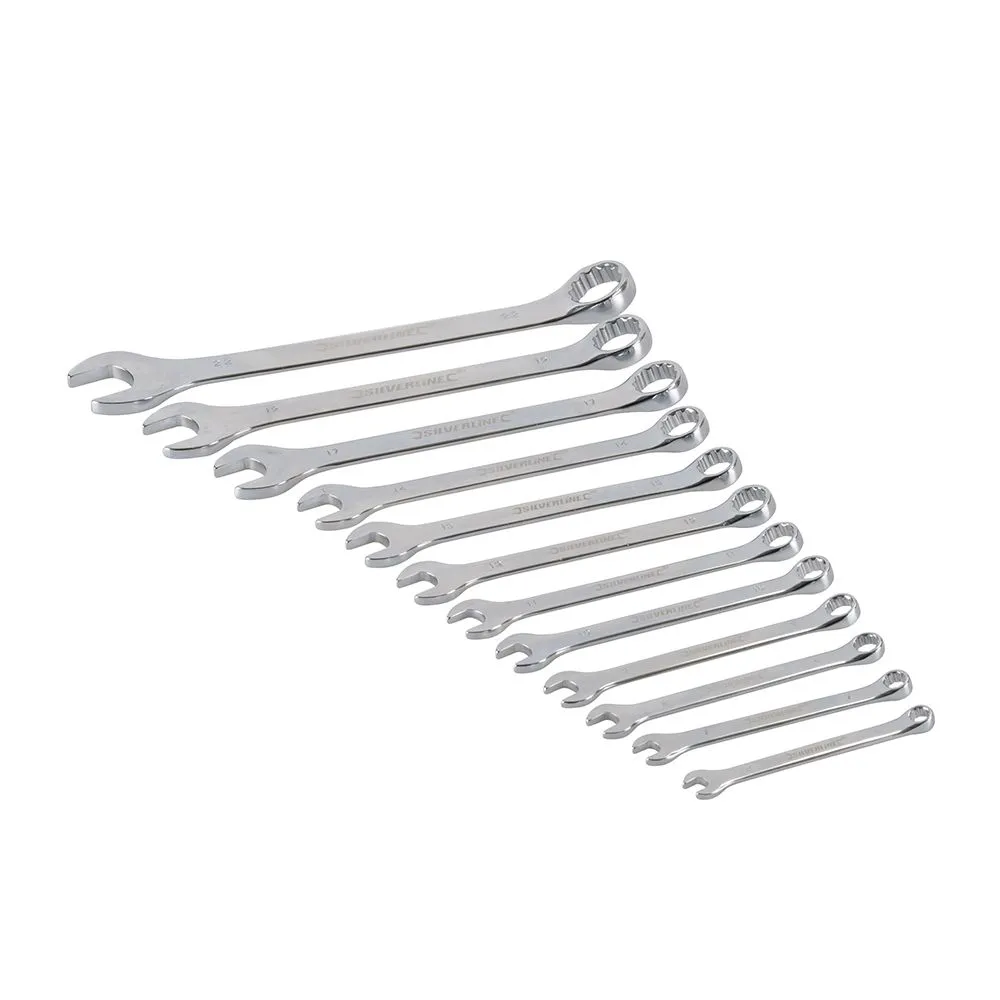 Klucze o płaskim profilu przechylone o 15° dla lepszego dostępu. Kuta i hartowana stal chromowo-wanadowa, z wysokiej jakości wypolerowanym wykończeniem. W zestawie: klucze w rozmiarze metrycznym MM: 6, 7, 8, 9, 10, 11, 12, 13, 14, 17, 19 and 22 mm, oraz wysokiej jakości nylonowe rolowane etui.