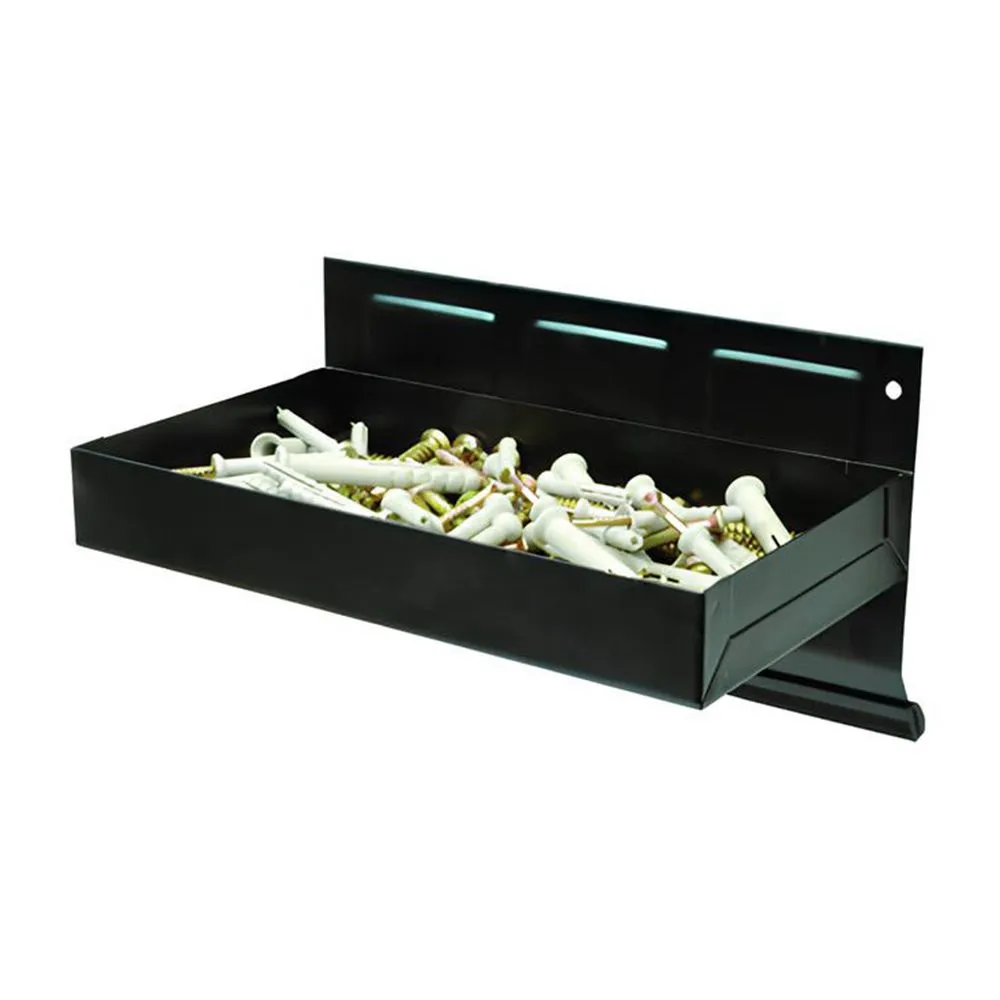 Wytrzymałe tace ze stali z boczną powierzchnią magnetyczną, łatwo dołączyć do dowolnej płaskiej powierzchni stalowej. Gumowe styki pozwalają uniknąć zarysowań. Komplet zawiera 4 tacki o szerokościach: 150, 215, 270 i 310 mm.