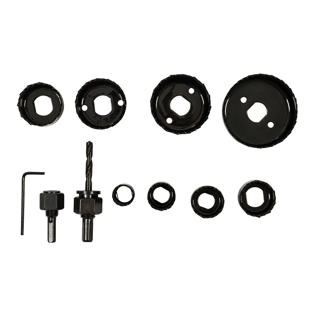 Wysoce węglowa stal z zębami poddanymi obróbce cieplnej. Otwornice przeznaczone do drewna, płyty gipsowej oraz nieżelaznych metali. W zestawie: 8 otwornic: 19, 25, 29, 32, 38, 44, 51, 64mm. 2 x trzpienie oraz 1 x 2,5 mm klucze sześciokątne. Kompatybilne z uchwytami wiertarskimi do 13 mm.