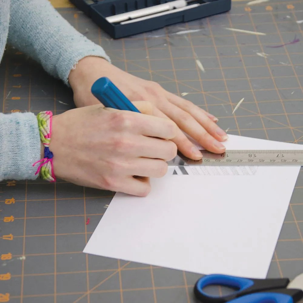Nożyki aluminiowe. Przeznaczone do prac precyzyjnych. Łatwe w obsłudze i niezwykle ostre. Zestaw zawiera 3 rączki oraz wymienny antyposlizgowy uchwyt, 11 skalpeli w różnyh kształtach oraz dwie płaskie koncówki - dłuta.
