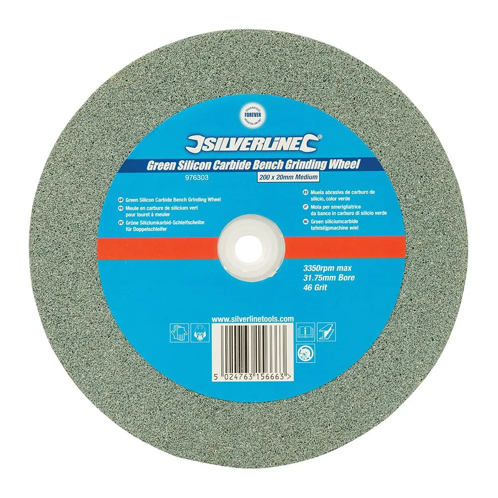Solidna tarcza ścierna wykonana z węglika krzemu o ziarnistości P46. Przeznaczona do ostrzenia końcówek narzędzi z węglika wolframu (TCT). Możliwość zastosowania na metalach i stopach żelaznych. Otwór 31,75 mm (1"-1/4) z tulejami redukcyjnym 12,7 mm (1/2"), 15,88 mm (5/8"), 19,05 mm (3/4") oraz 25,4 mm (1") Do użycia z szlifierkami kątowymi 150 mm.